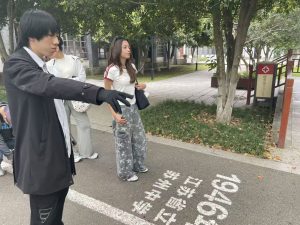 Afterwards, we showed them around the campus one by one: the Science Building, the Red Building, Ziyang Building, Daoshan Hill, Laixiu Square, and the Library. Throughout the tour, we did not merely explain the functions of these buildings; instead, we kept connecting the conversation to traditional Chinese culture and the history of the school. For instance, we talked about the origins of the building names, the tradition of ancient Chinese academy culture, and the classic “mountain, water, and garden” layout often seen in Chinese campuses.